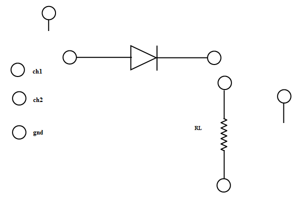 - Channel 1 shows the input sine waveform, Channel 2 shows the output rectified waveform.